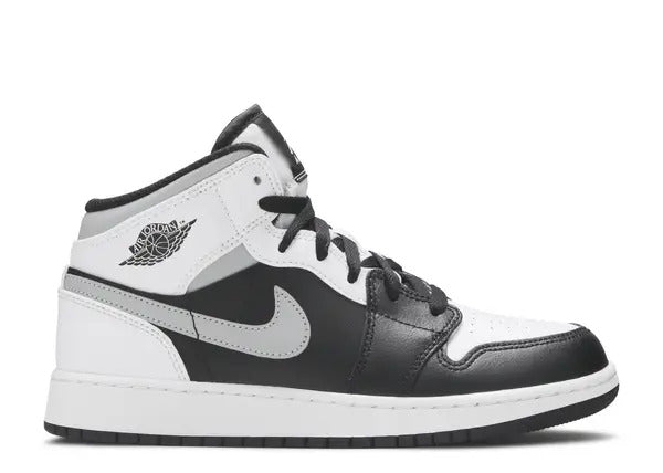 The Kids Air Jordan 1 Mid White Shadow pays homage to the Jordan 1 High Shadow, which originally released in 1985. While the design sticks with foundational black and Shadow grey panels, it adds white into the mix to provide a new take on the classic.