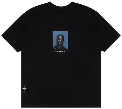 The Free The Rage II Tee by Travis Scott is made from 100% cotton and has a relaxed fit with short sleeves. The tee displays a large graphic print on the front with the text "IT'S MIAMI" below, embodying Scott's bold aesthetic. Part of Travis Scott's Cactus Jack brand, known for merging music, art, and fashion, this piece reflects the distinctive urban style that's been popular since its inception.